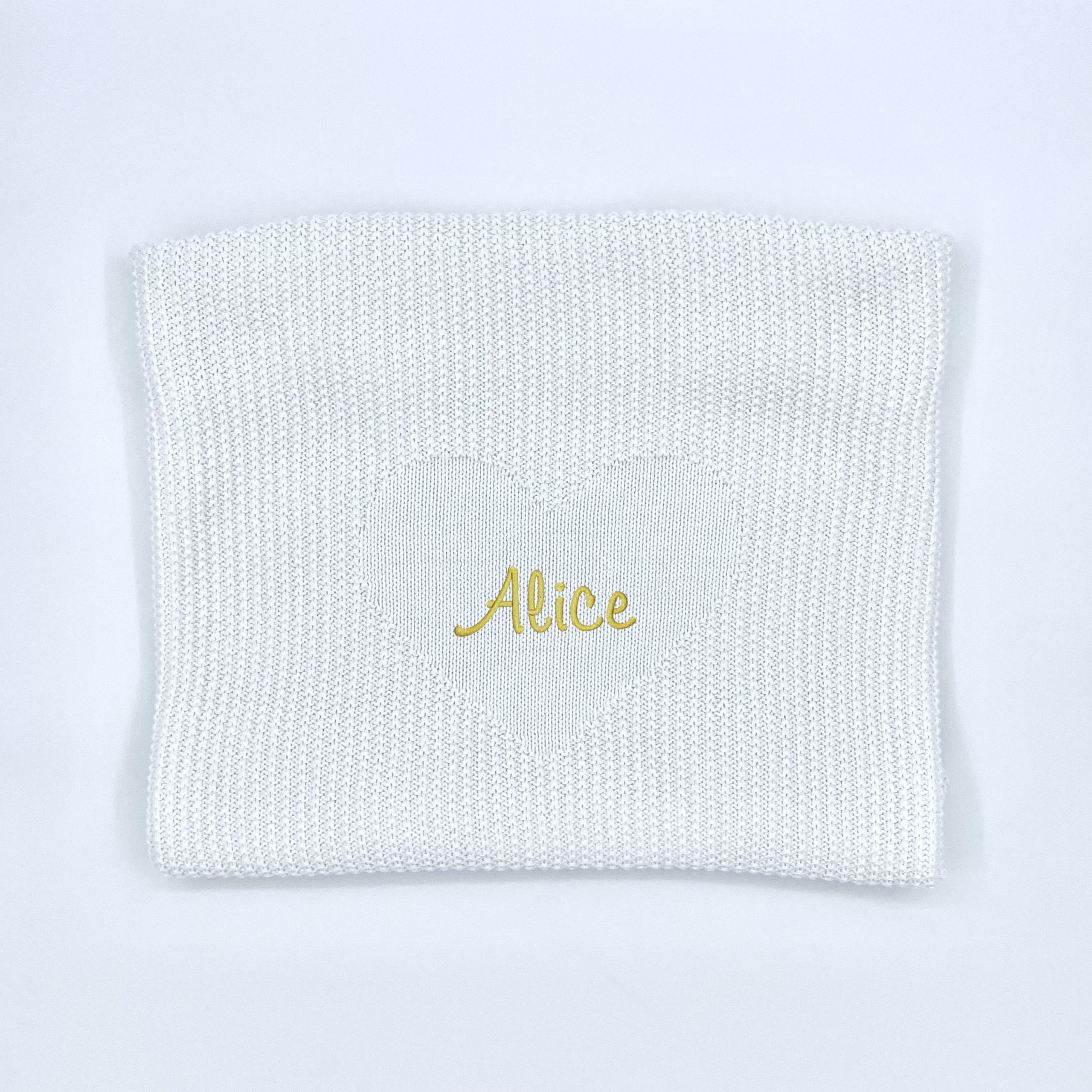 Couverture blanche en tricot au design unique, 100% coton certifié Oeko Tex.